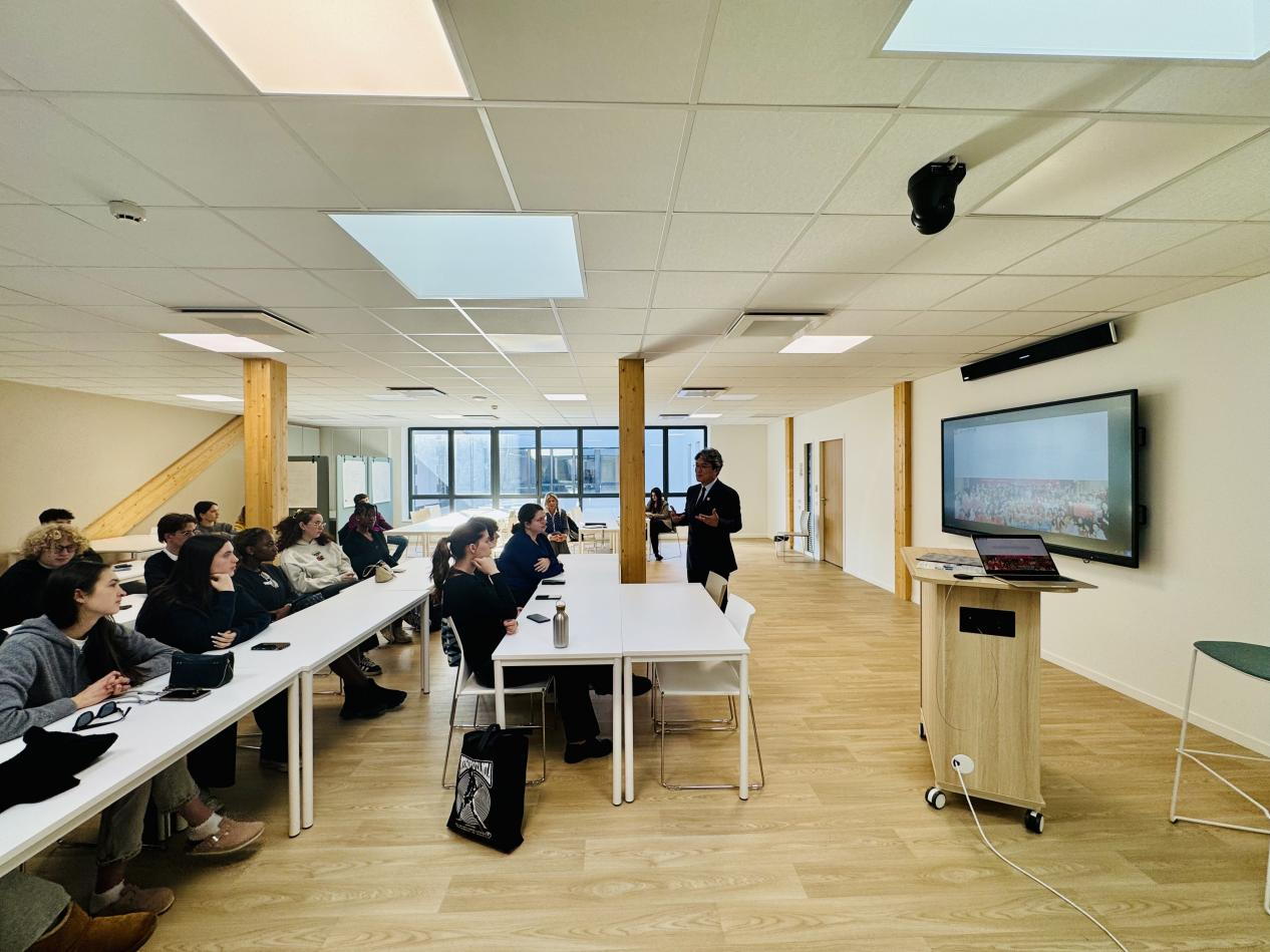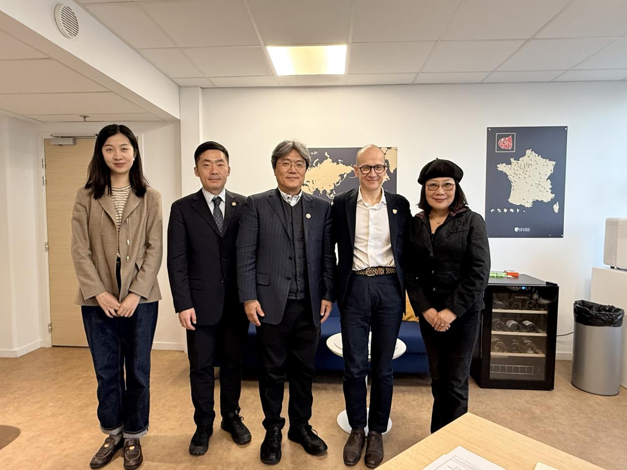 巴黎学院董事长奥利维尔·德拉加德对代表团的到访表示热烈欢迎,并简要介绍了巴黎学院的发展情况。他表示,巴黎学院高度重视与中国高校的合作,致力于通过优质的教育资源和开放的态度,帮助学生实现学术与职业发展的对接。他表示,双方有许多共同点,比如以语言教育为起点,注重学生的实际需求。未来,双方可以探索游学项目、共建中文学习中心以及中外合作办学等领域的深度合作。