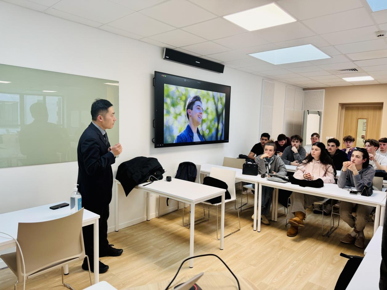 北语新闻网3月26日电(通讯员 刘一萱 摄影 刘一萱)应法国克莱蒙高等商学院、法国巴黎学院和英国诺丁汉特伦特大学邀请,副校长张宝钧率团访问法国、英国,推进我校与法英两国高校的教育文化交流合作,实地参访合作院校,参加北京语言大学克莱蒙校区揭牌仪式、出席两校合办中外合作办学项目联合管理委员会等。