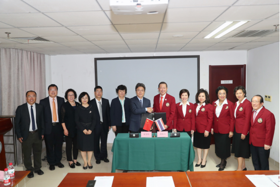 张宝钧副校长和洪百川先生在北语各部门领导和曼谷学院学员们的共同见证下,签署了《北语与AFS泰国基金会合作协议》。