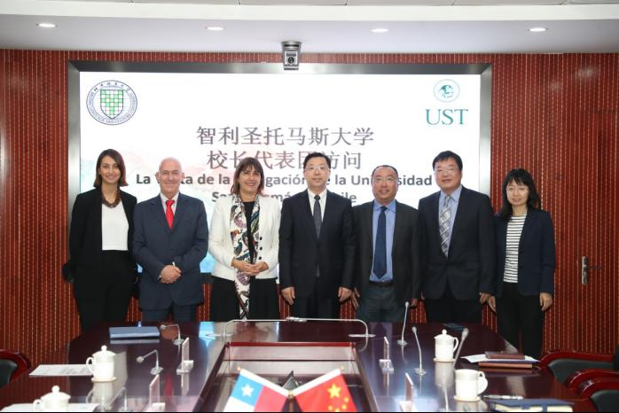 10月8日上午,刘利校长在综合楼909会议室会见了智利圣托马斯大学校长玛利亚·奥莉薇娅·瑞卡特·埃雷拉女士、国际处处长罗伯特·拉丰登先生等一行四人,双方进行了亲切友好的会谈,并就两校联合培养本科生项目合作细节进行了磋商。