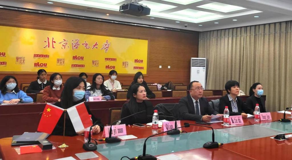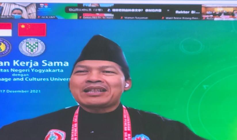 Siswantoyo副校长在线上致辞。他向北京语言大学的各位领导、老师表达了真挚的问候。他表示,十分高兴能与北京语言大学建立合作伙伴关系并由此开展高校间友好交流合作。北京语言大学是国际化的知名学府,与北京语言大学建立高校间合作伙伴关系能极大地促进两校间的教育交流合作,增进两校之间的友好情谊。他希望两校加强沟通联系,共同落实好协议内容,推动备忘录转化为积极成果,为促进中印尼两国合作交流作出贡献。