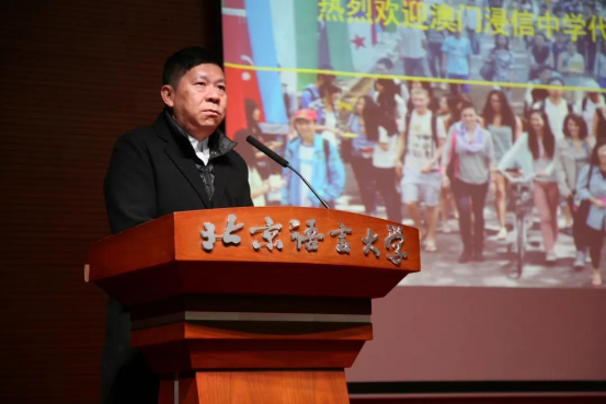 我校港澳台办蔺劼副主任向代表团师生介绍北语的发展历史、港澳台学生就读情况以及北语澳门学生的学习生活、学生社团等,欢迎澳门中学生日后继续前来北语学习交流。她表示,代表团交流活动为澳门青少年提供了深入认识内地高校和了解内地生活的机会,有助于增加青年学生对国情国事的认知,搭建两地教育交流与合作的桥梁。
