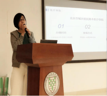 港澳台办李明老师介绍我校港澳台侨学生医疗保障办法、奖学金评选、居住证办理等政策。为了保障港澳台侨学生权益,我校每年为港澳台侨学生办理北京市城乡居民基本医疗保险、评选港澳台侨学生奖学金,并协助办理港澳台居民居住证,便利港澳台侨学生在京学习、生活,激励在校港澳台侨学生勤奋学习、积极进取。