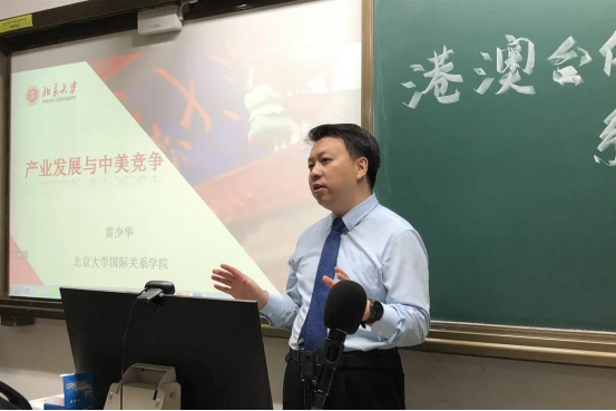11月11日晚,北京语言大学2020级港澳台侨学生国情教育系列课程第七期在教五楼107教室举行。北京大学雷少华副教授为同学们作“产业发展与中美关系”专题讲座。