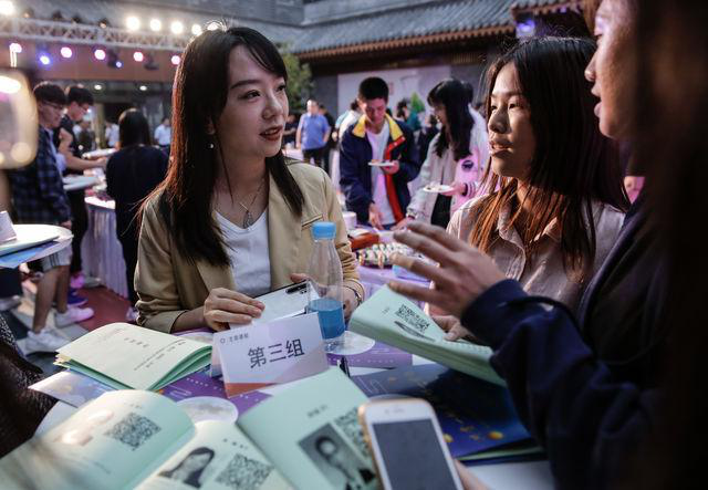 9月12日下午,北京未来科学城,被称为“北斗女神”的全国青联委员、中国科学院光电研究院研究员徐颖(左一)与学生结对交流。活动现场,学生可以扫二维码与全国青联委员组队互动。中国青年报·中国青年网记者 李峥苨/摄