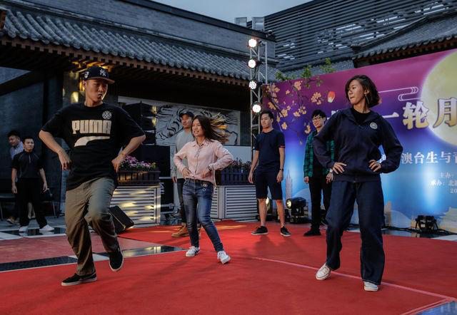 9月12日,北京未来科学城,几名内地港澳台生在“共赏一轮月 同唱一首歌”中秋交流活动上观看街舞表演。中国青年报·中国青年网记者 李峥苨/摄