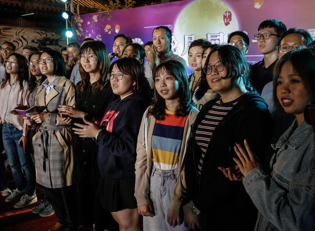 9月12日,北京未来科学城,内地港澳台生合唱歌曲《中国人》。当天,来自北京大学、清华大学、中国人民大学、北京语言大学、中国传媒大学等7所高校的港澳台学生,与来自全国青联的15位委员代表在“共赏一轮月 同唱一首歌”中秋交流活动上一起做月饼、玩游戏,共迎中秋佳节。中国青年报·中国青年网记者 李峥苨/摄