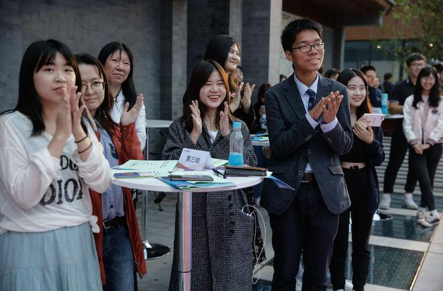 9月12日,北京未来科学城,几名学生上台与街舞舞者互动。中国青年报·中国青年网记者 李峥苨/摄