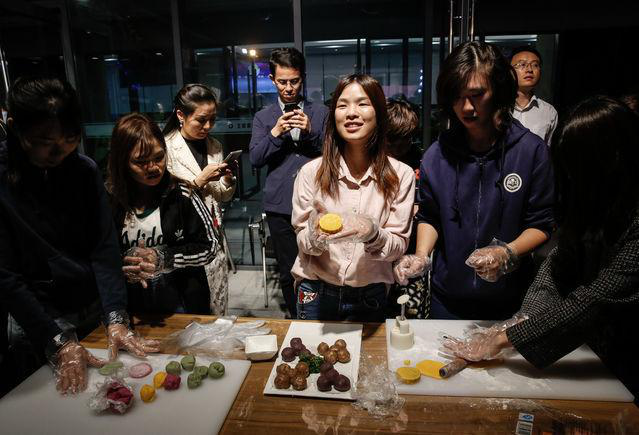 9月12日,北京未来科学城,一名来自北京语言大学的香港学生展示现场学习制作的冰皮月饼。中国青年报·中国青年网记者 李峥苨/摄