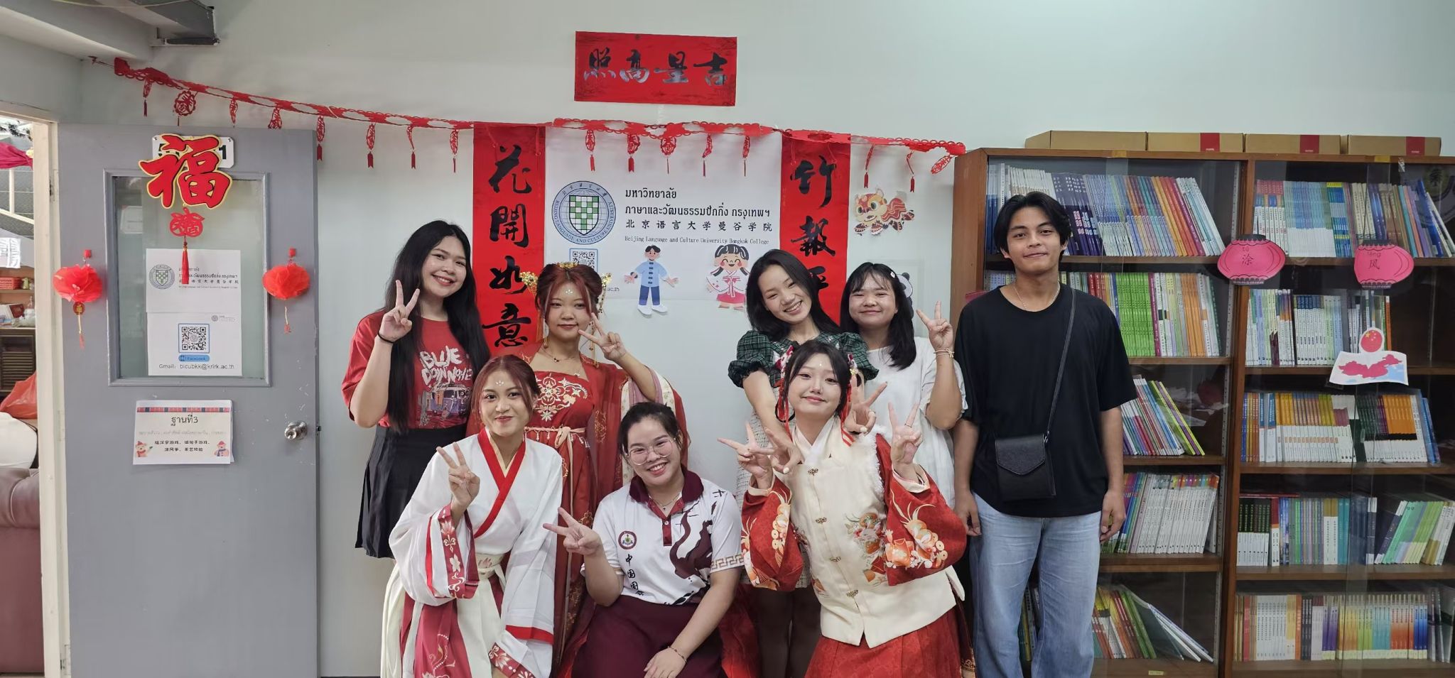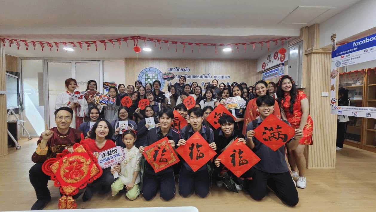 目前,学校派遣中方院长一名,教师一名,另有13名泰方教师共同参与教学与行政工作。在深耕教学的同时,曼谷学院高度重视社会影响力的拓展,积极参与泰国本地教育交流与文化传播活动。自2024年9月以来,学院组织并参与了多项富有特色的学术与文化实践,如调研中华总商会“中中学院”汉语教学情况、参加“泰中投资机会——商业对接研讨会”和《泰国高校中文教育研讨会》等重要学术活动,并在活动上做重要发言。2024年秋季以来,学院陆续举办了“汉语教学观摩交流工作坊”“中文现代教育技术课程导论”等专题讲座,并参加了“汉教英雄会”泰国分赛区开幕活动和“汉字嘉年华”巡展曼谷站开幕活动。在社交媒体方面,学院在泰方合作大学媒体部的支持下,通过Facebook平台开展线上直播宣传,吸引了超三千名观众关注与互动。