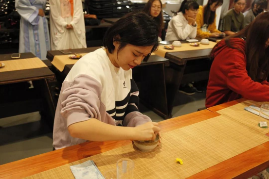 10月7日,北京语言大学港澳台学生国情教育系列课程第三期“宋氏点茶”在朴素生活体验馆举行,2019全体港澳台学生参与学习。同学们在重阳节这一传统节日里感受宋人的生活方式,观汉服,熏唐香,点宋茶,闻琴音,品茶点,体验中国优秀传统文化。