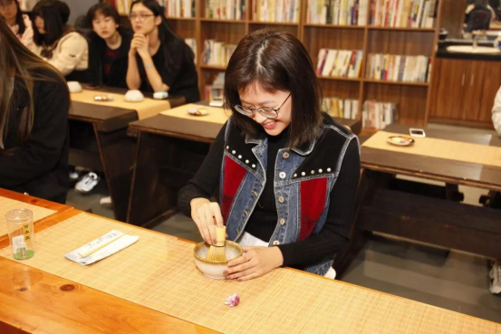 体验过程中,有同学在击打环节中未能掌握好速度与手腕技巧,因而产生的泡沫不够丰富;也有同学因为击打过度,造成最终点出的茶汤不够绵绸。当然,还有很多同学成功点出口感丰富的茶汤。在踊跃报名参与的斗茶体验中,来自台湾的叶珈妤同学点出的茶不仅泡沫丰富、细腻、绵绸,而且泡沫的持久度好,成为此次斗茶冠军,并获赠朴素生活体验馆提供的纯手工茶筅和茶匙。