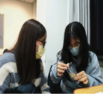 本期课程所选的辟瘟香囊由藿香、丁香、木香等九种药材制成,张大夫逐一介绍每味药材的特征、药性、功效等,并请同学们进行观闻辨识,增加对药材的直观认识。了解香囊的使用方法和注意事项之后,同学们在张大夫的指导下动手填装药材,完成辟瘟香囊的制作体验。