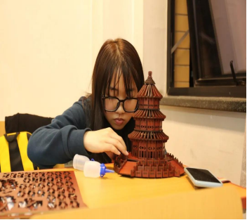 这次的国情教育课程是关于一种特殊的建筑结构——“榫卯”。榫卯结构不需要钉子,单单靠每一块木头之间的契合保持稳定,有的历经千年依旧屹立不倒,在没有钢筋水泥的时代凝聚着古人的智慧。