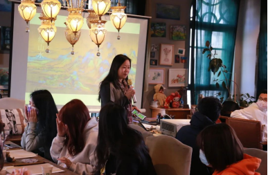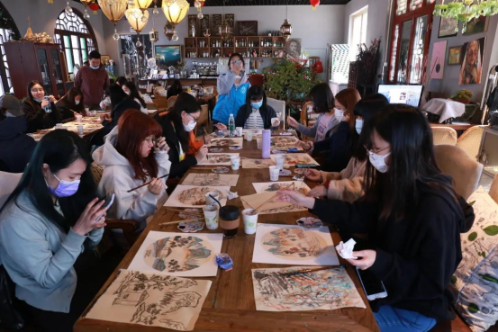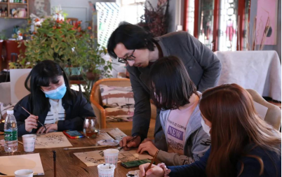 4月3日,北京语言大学2020级港澳台侨学生国情教育系列课程第七期《青绿山水》宋式山水镜心绘画课程在朴素生活体验馆顺利举行,近30名港澳台侨学生及志愿者参与本期课程。